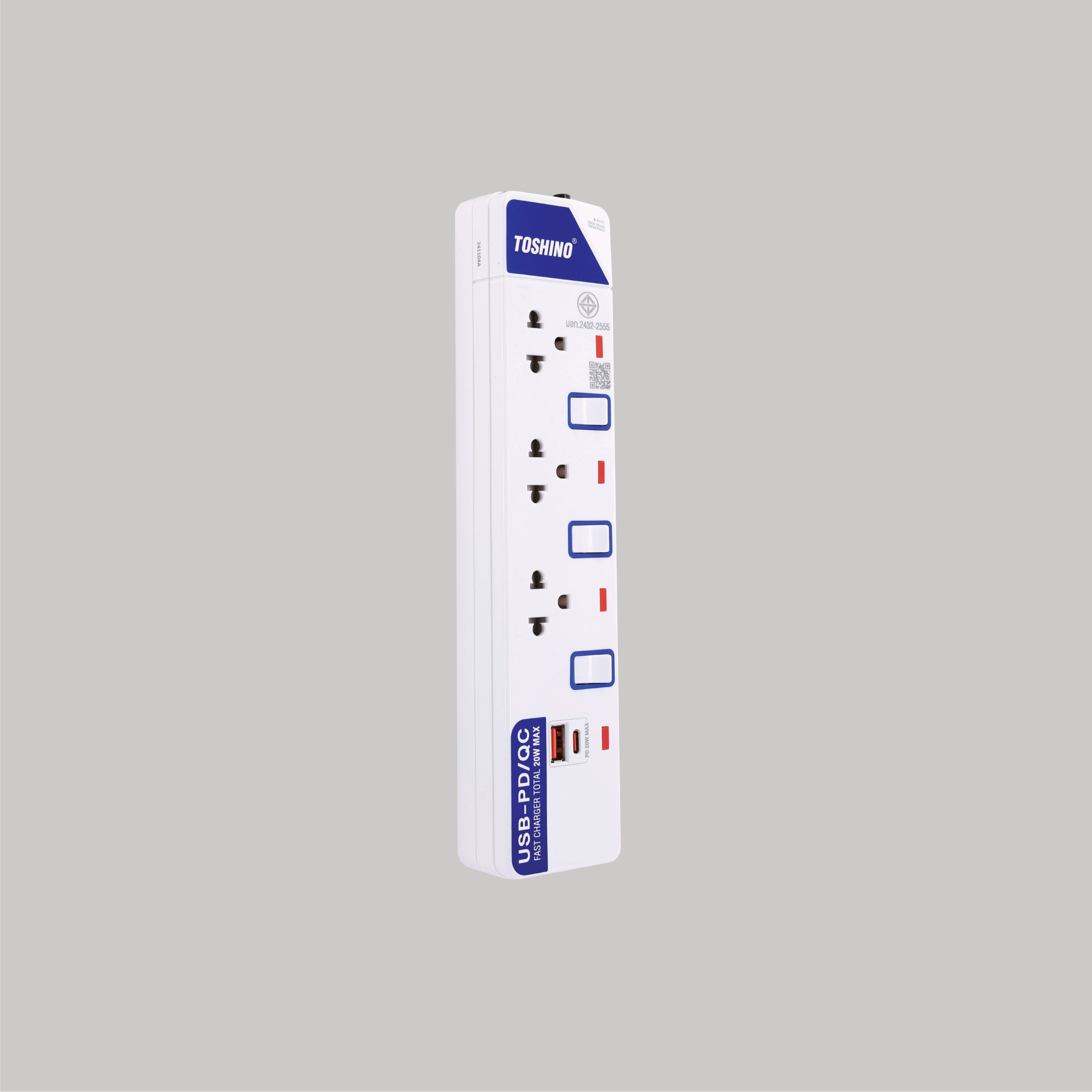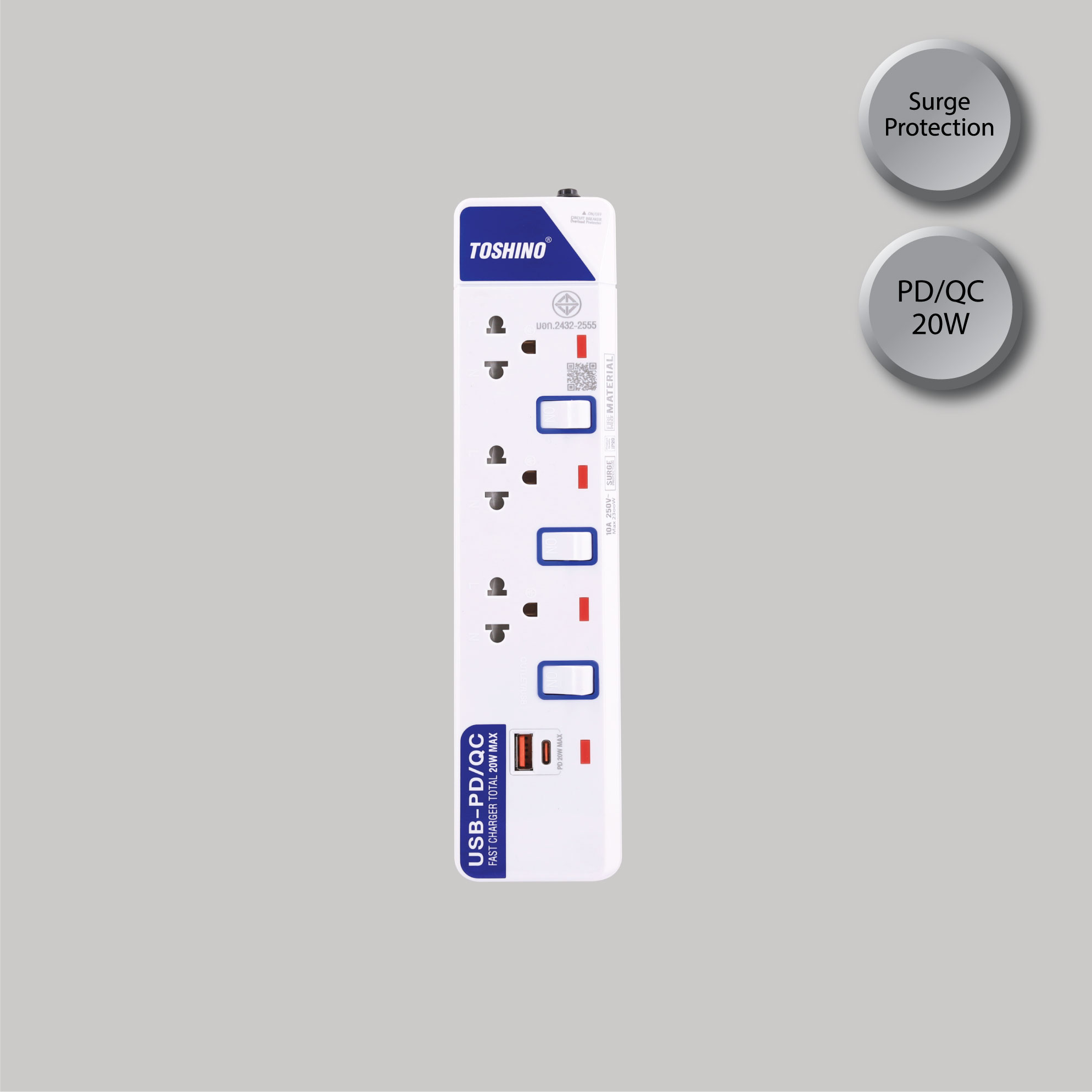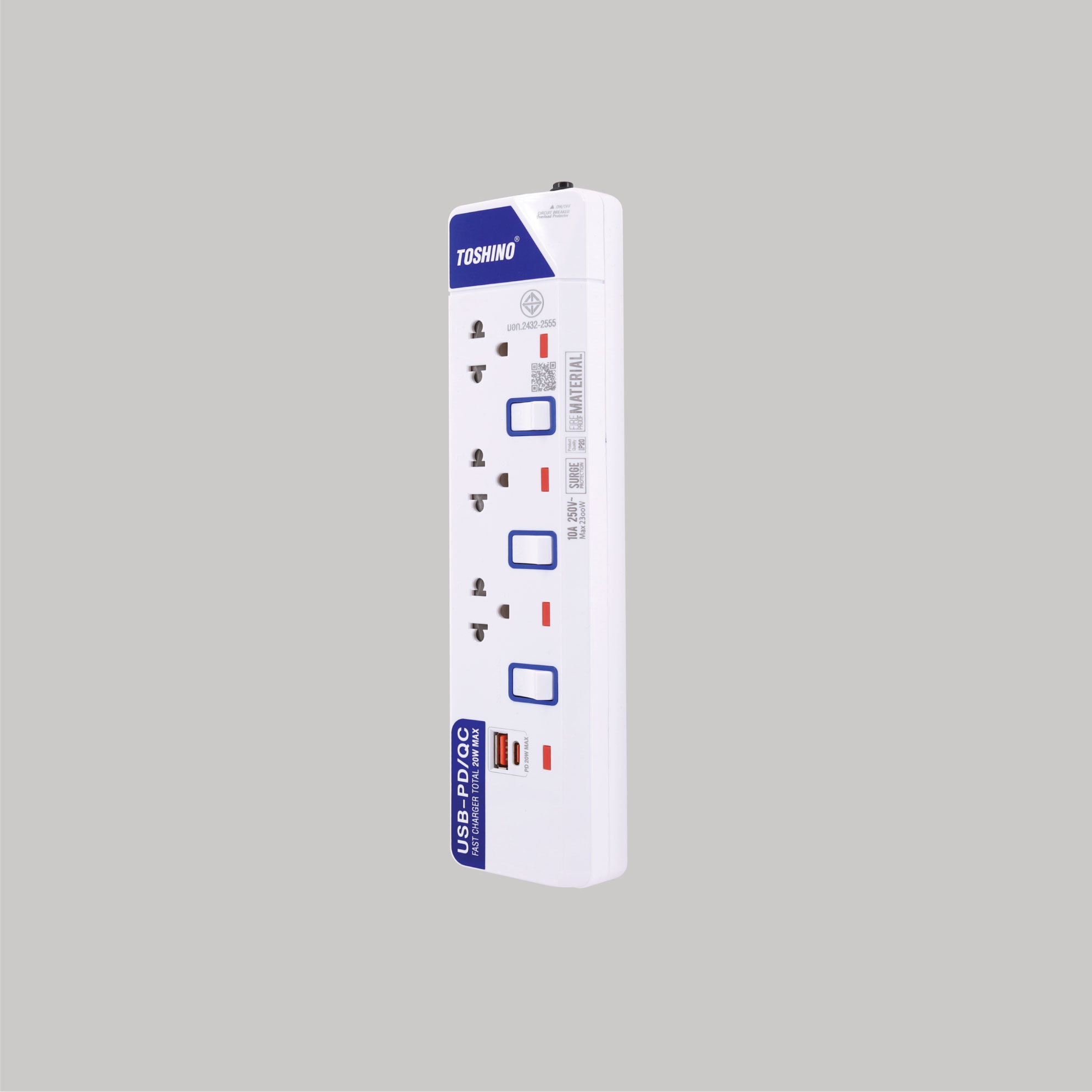 Toshino รางปลั๊ก 3 ช่อง + 1C1A 20W 3 สวิตช์ 3 ม. รุ่น ET-913UC
